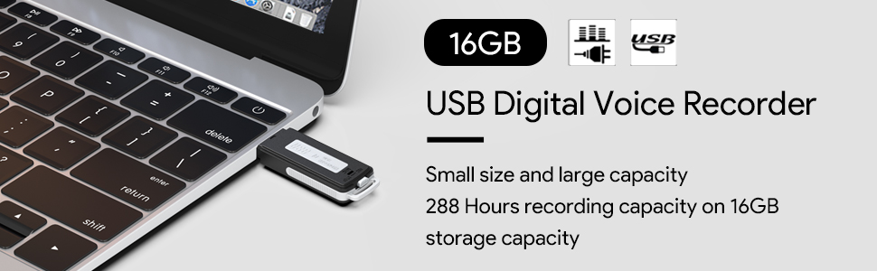 16GB USB Voice Recorder, TENSAFEE Mini Recorder Sound Audio Recorder for Lecture Meeting Pocket Voice Recorder Dictaphone Small Recording Device with 288 Hours Recording Capacity for Interview Class