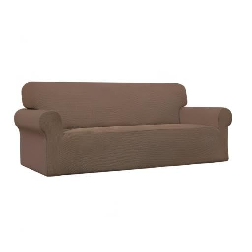 The Easy-Going Stretch Sofa Slipcover is a one-piece, elastic-bottom cover made from a high-quality 80% polyester and 20% spandex jacquard fabric. It fits sofas with sitting areas between 60 and 81 inches, offers quick installation with non-slip foam anchors, and protects furniture from daily wear and stains. Machine washable and backed by a 30-day warranty, it combines practicality with stylish small checks design in brown.