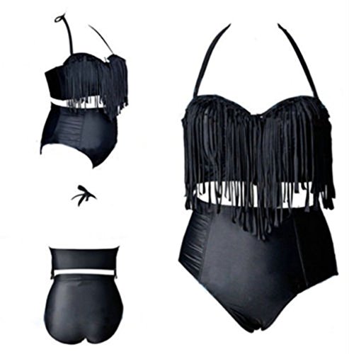 Women's Retro Tassel High Waist Swimwear Swimsuit Bikini Sets