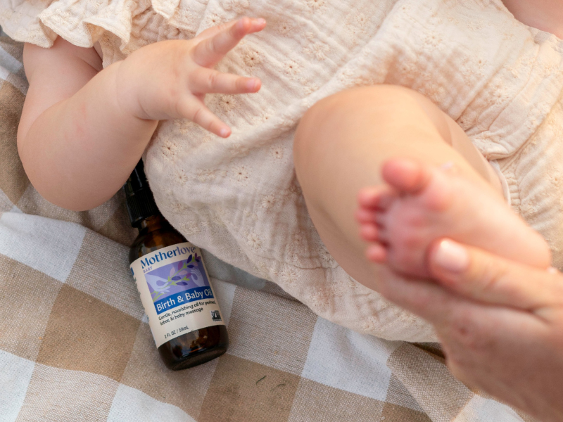 Motherlove Birth & Baby Oil is a 2 oz gentle lavender-infused oil designed for perineal and labor massage, as well as baby massage. Made with non-GMO apricot oil and organic lavender, this vegan and cruelty-free product is perfect for delicate skin. It is free from harmful chemicals and supports a women-owned, environmentally responsible brand.