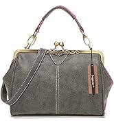 SegaterWomen Retro Hollow Oil Wax PU Leather Handbag Kiss Lock Crossbody Purse Vintage Messenger Bag Tote
