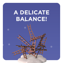 Fun dexterity game with a quirky and intriguing ‘table presence’. You roll the dice and place a ladder accordingly - but the ladders are oddly shaped and it is harder than it looks to complete the request! The components are high quality and we kept returning to this game over and over again. The plastic cloud has a very slight wobble to it, but I’m not sure if this is a fault or not - it did not affect the gameplay, nor diminished our enjoyment of the game.