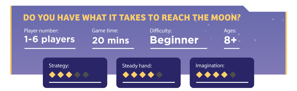 Thames & Kosmos' Catch the Moon is a whimsical ladder-stacking game designed for 1 to 6 players aged 8 and up. With a playtime of just 20 minutes, this engaging game combines strategy, creativity, and a bit of luck as players roll the die and place wooden ladders to build a precarious structure. The goal is to earn the fewest raindrops by the end of the game, making it a perfect choice for family gatherings and game nights.