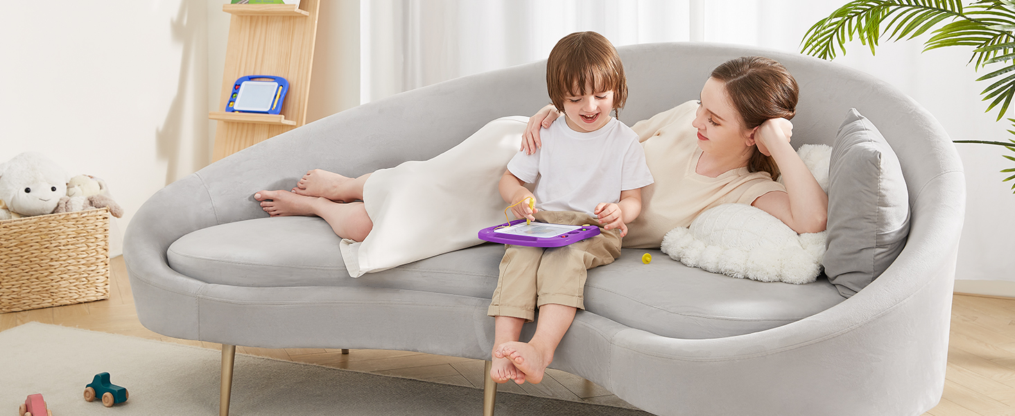 The SGILE Magnetic Drawing Board is a compact, colorful doodle pad designed for toddlers to safely explore creativity. Featuring 4 vibrant color zones, a magnetic pen, and 3 playful stamps, it offers endless screen-free fun. Certified safe with BPA-free ABS plastic and an ergonomic design, itβs perfect for travel, learning, and gifting.