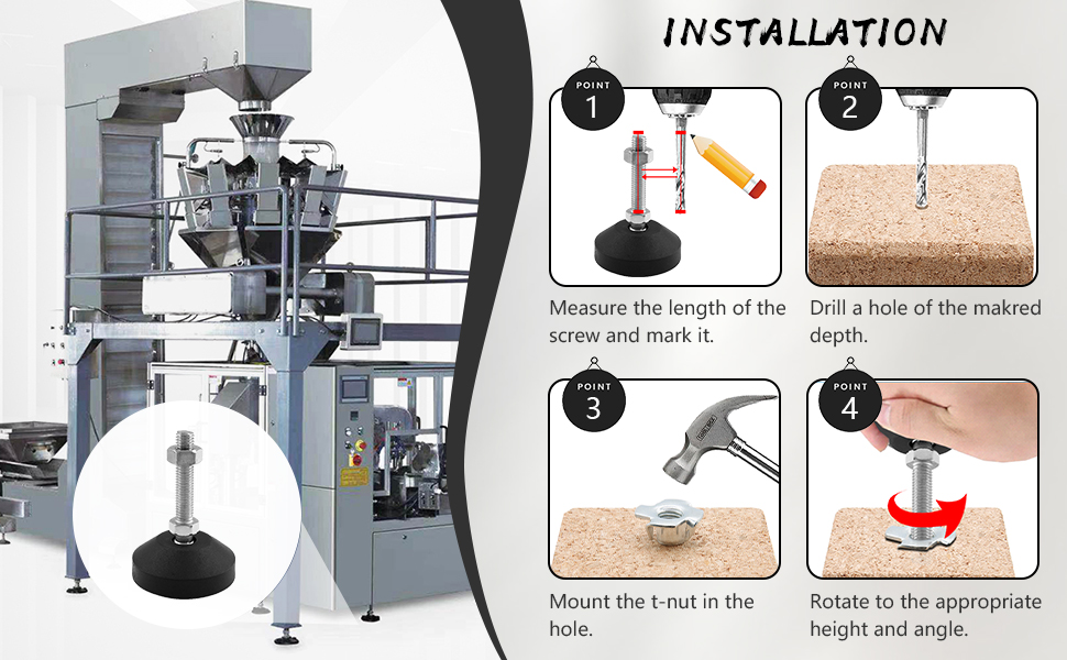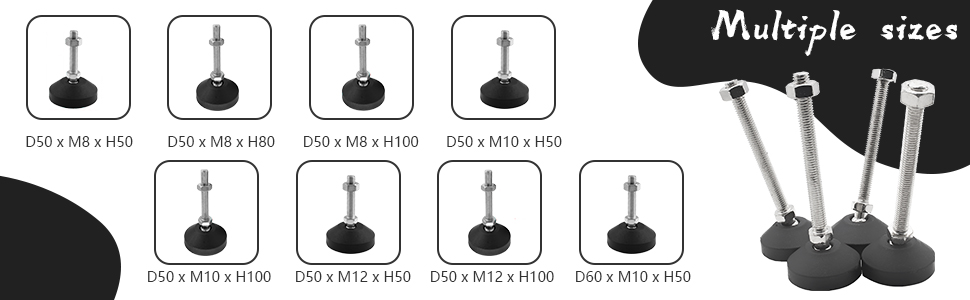 Luomorgo 4 Pcs M10 Leveling Feet with T-Nut, Anti Skid Threaded Rubber Feet, Adjustable Swivel Levelers for Furniture Feet, Heavy Duty Appliance Feet for Mechanical Equipment (D50 x M10 x H50)
