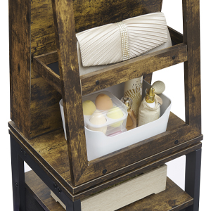 The coucheta 360° Swivel Mirrored Jewelry Cabinet is a modern, floor-standing storage solution featuring a full-length HD rotating mirror, extensive jewelry organization with over 160 slots and hooks, secure locking system with velvet lining, and built-in makeup storage. Designed for millennial professionals, it combines style, security, and space efficiency in a polished brown engineered wood finish, measuring 66.1" tall and easy to move with lockable wheels.