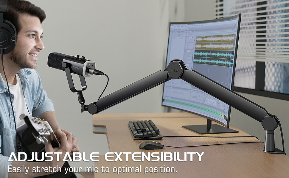 The FIFINE BM66 Mic Boom Arm is a heavy-duty, fully adjustable microphone stand crafted from steel, supporting microphones up to 2kg. Featuring a 360Β° rotatable base and a hidden cable management channel, it offers a clean, customizable setup ideal for podcasting, streaming, and home office recording. Easy to install with a secure desk clamp and compatible with multiple thread sizes, itβs designed to enhance your audio experience with professional-grade stability and flexibility.