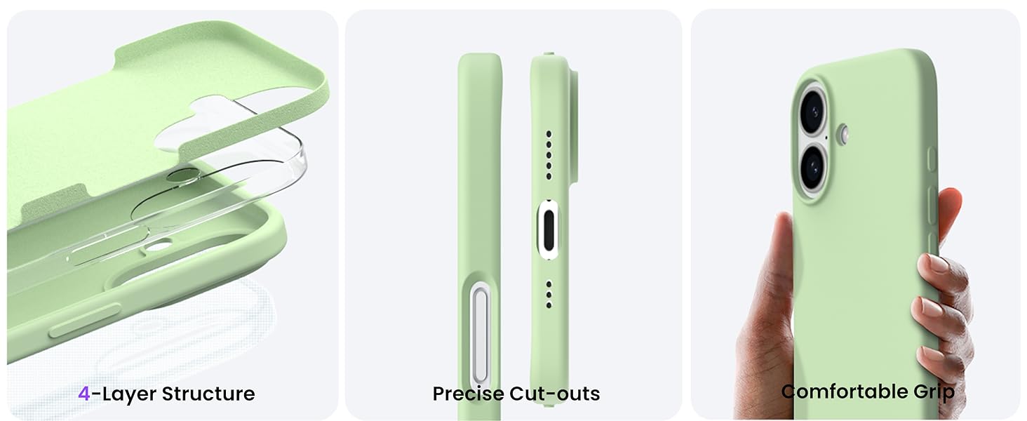 The ORNARTO Compatible with iPhone 16 Case is a slim, liquid silicone cover designed specifically for the iPhone 16 6.1-inch model. It features a unique raised bevel camera design for enhanced lens protection, is easy to clean, and comes in a variety of fashionable colors to match your personal style.