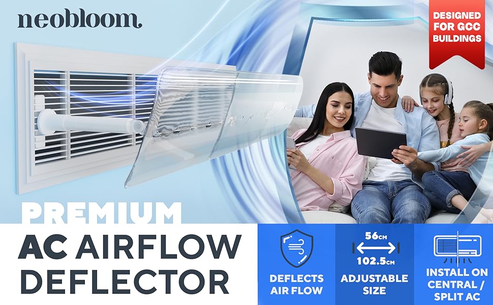 The Split AC Deflector Central is a universal, adjustable airflow solution (56-102.5 cm) designed for central AC vents, registers, and grilles. It features easy installation with included wall and ceiling brackets, durable construction for long-lasting use, and a compact design that enhances room comfort by directing cool air precisely where needed.