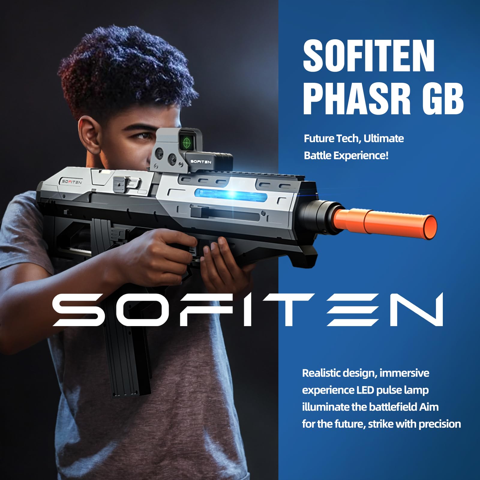 The Automic Gel Ball Blaster combines cutting-edge design with high-speed performance, firing gel balls at over 180 feet per second. Equipped with a fast-charging 7.4V modular battery and a massive 1000-round magazine, it ensures extended, adrenaline-pumping gameplay. Its eco-friendly, non-toxic gel ammo breaks on impact without pain, encouraging safe, social, and outdoor team battles for ages 14 and up.