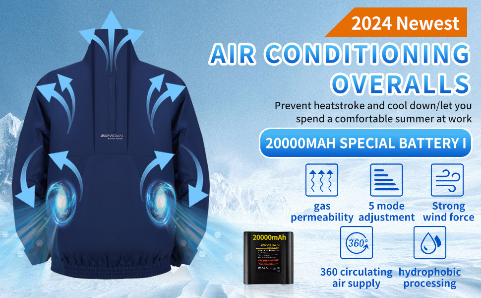 MIDIAN30V Air Cooling Jacket, 20000mAh Large Capacity Cooling Clothes with Fan Body Cold Apparel for Working Cycling Outdoor