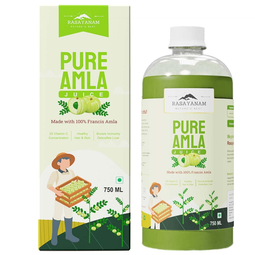Rasayanam Pure Amla Juice - 750 ML | Healthy Hair & Skin | Immunity Booster | Vitamin C | Natural & 100% Pure | Made with Cold Pressed Francis Amla