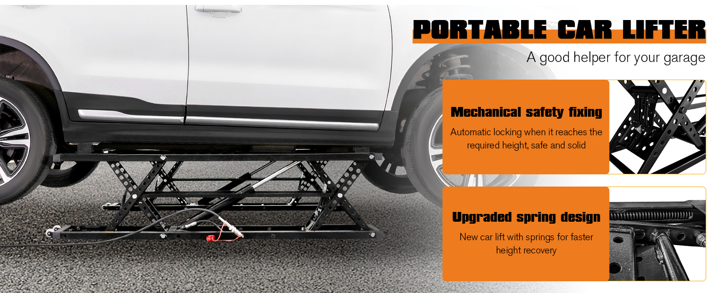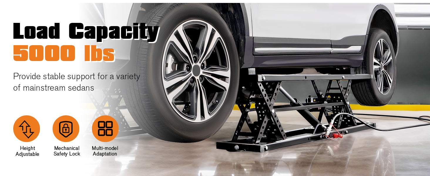 The Jocisland Portable Car Lift is a robust, versatile scissor lift designed for home garages and shops. It safely lifts vehicles up to 5000 lbs to a maximum height of 26 inches, featuring adjustable height settings and durable Q235B steel construction. Its portable, foldable design with wheels ensures easy mobility and storage, making it an essential tool for professional-grade vehicle maintenance.
