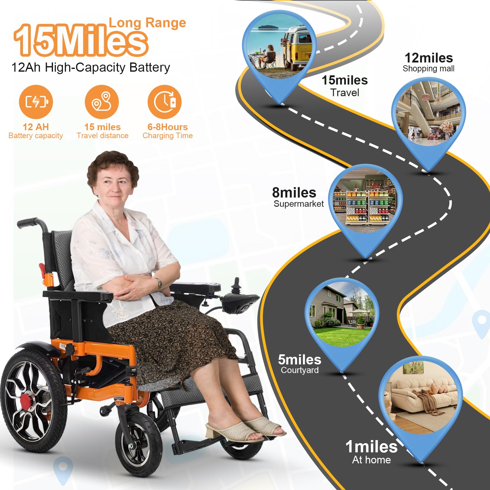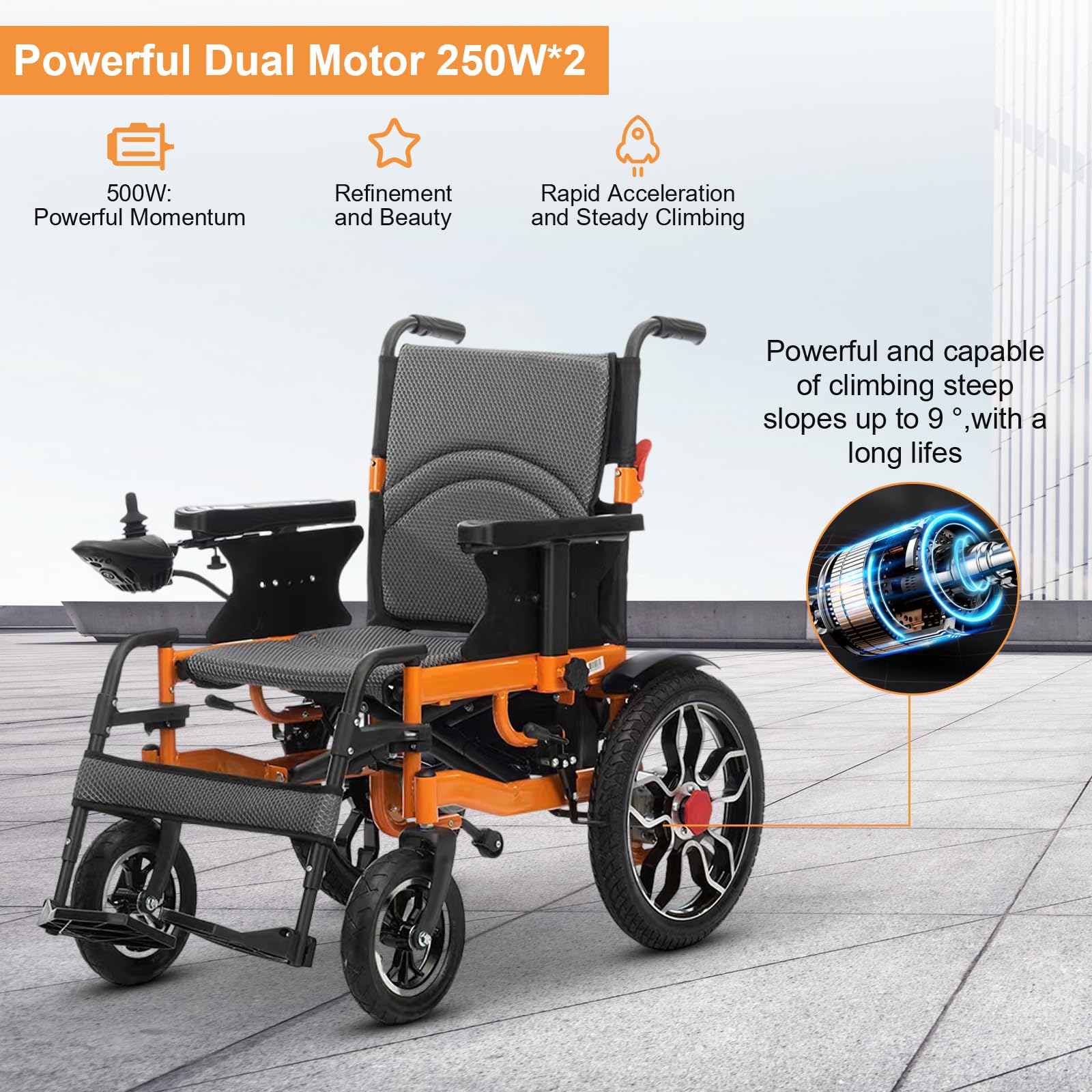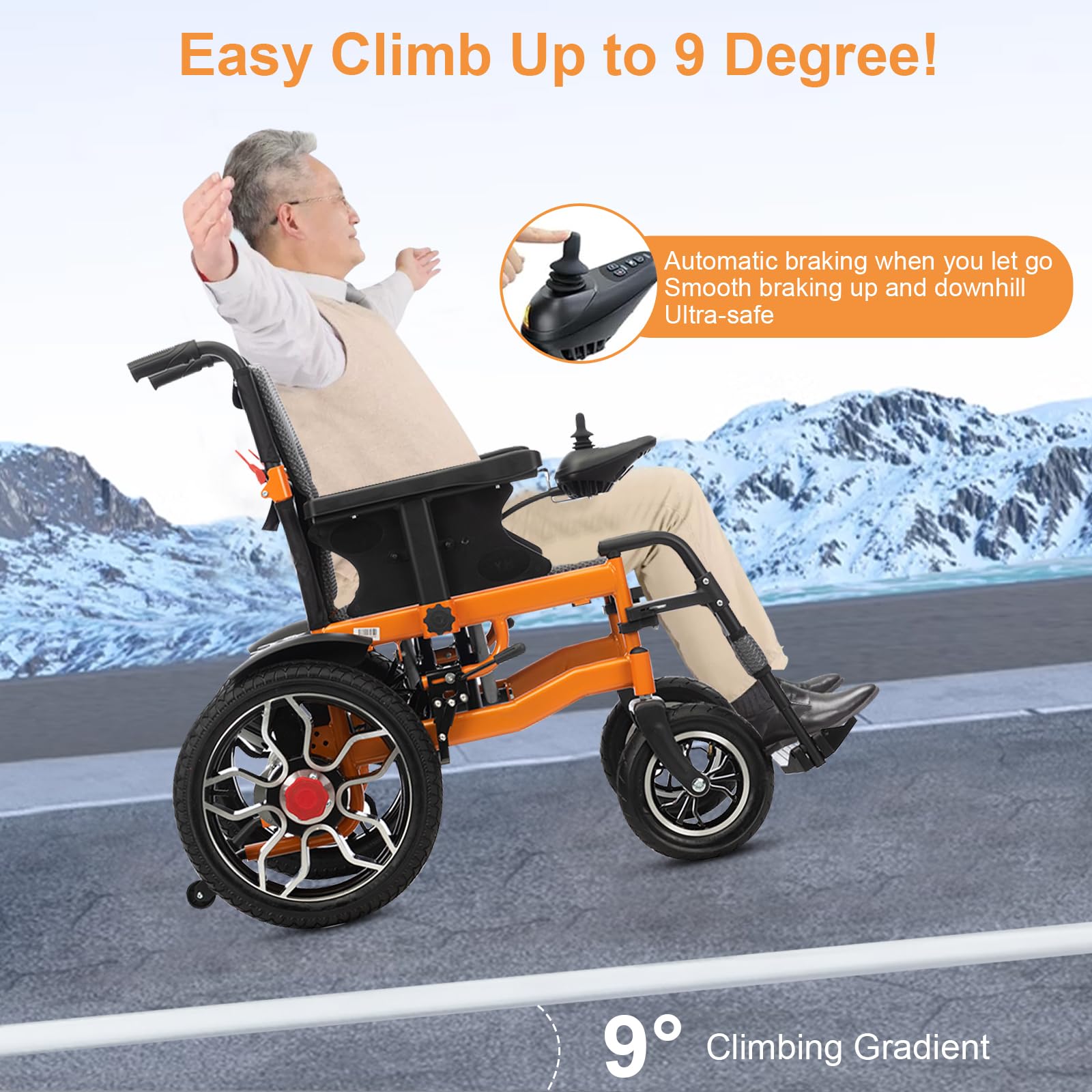 This intelligent electric wheelchair combines a robust 500W dual motor system with puncture-proof honeycomb wheels to deliver smooth, safe rides across diverse terrains. Designed for maximum comfort, it features a breathable mesh seat and ergonomic backrest, supported by a durable aviation alloy frame. Its foldable, lightweight design is airline approved, making it the perfect mobility companion for active seniors seeking independence on the go.