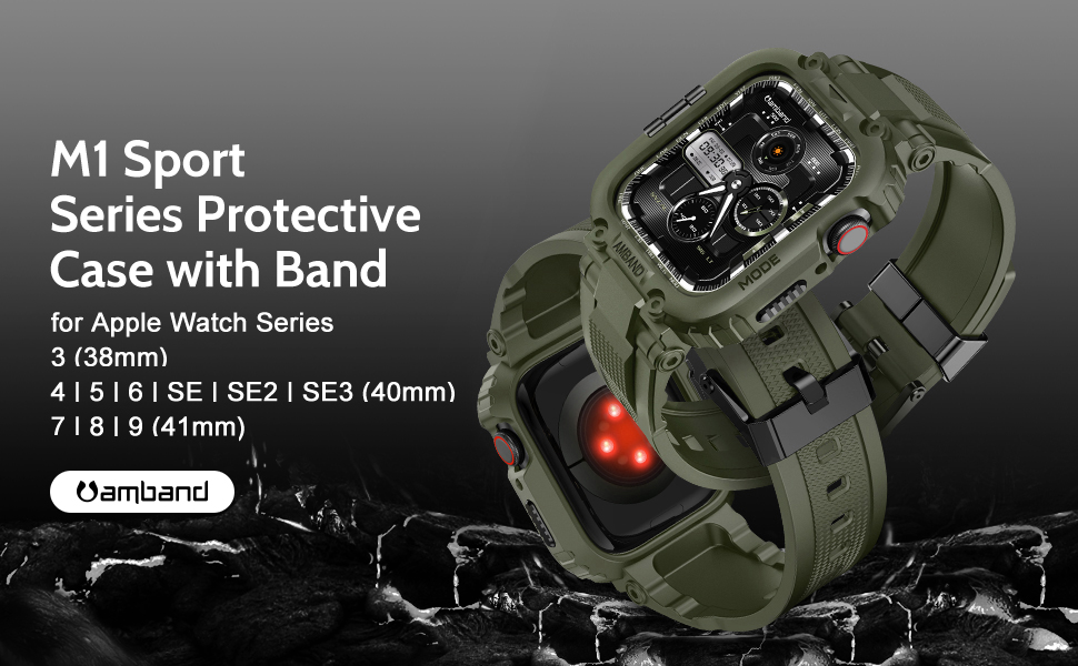 amBand M1 Sport Case with Band for Apple Watch Ultra 3/2/1 & SE 3/2/1 & Series 11 10 9 8 7 6 5 4 3 49mm 46mm 45mm 44mm 42mm 41mm 40mm 38mm, Shockproof & Scratch Resistant Rugged Bumper for Men